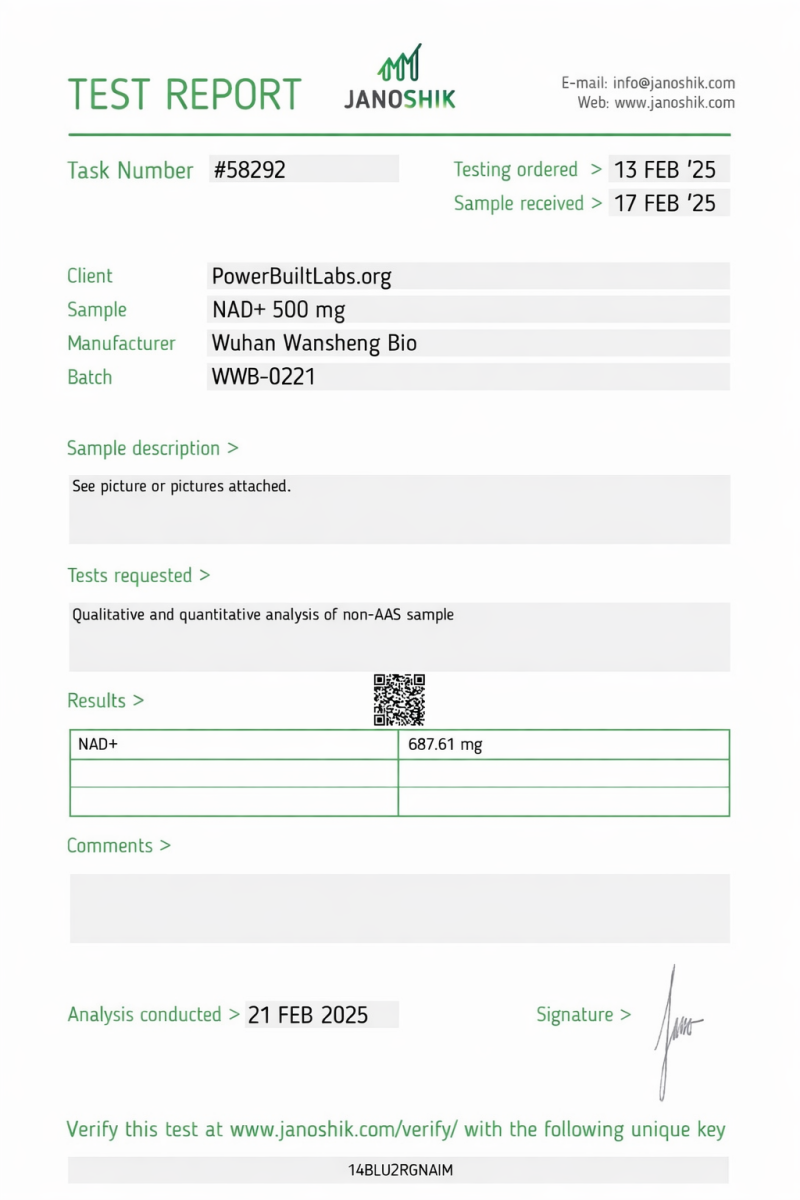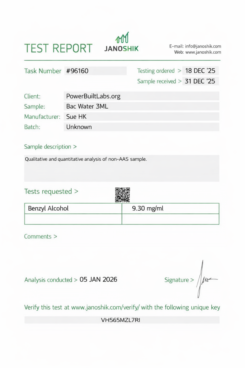 Each batch undergoes third-party analytical testing to confirm identity and purity specifications.